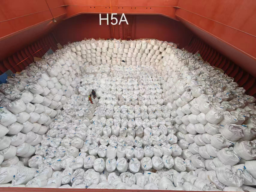 During this operation, jumbo bag protection standards were significantly upgraded to the highest level implemented to date. Comprehensive cargo protection measures were applied to prevent direct contact between the jumbo bags and the vessel’s cargo holds, with enhanced securing and separation arrangements designed to minimize movement-related abrasion during the voyage.